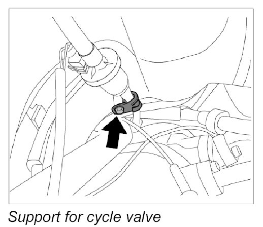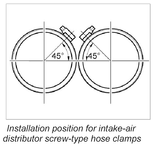 14. Tighten screw-type hose clamps -arrows- on resonance tube.