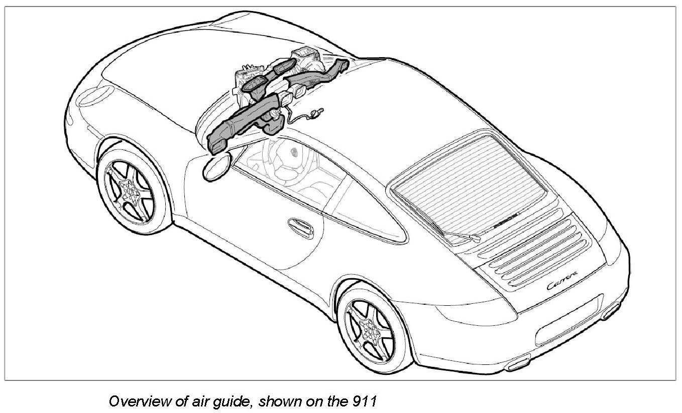 2. If the air guide -D- has to be removed, first remove the air vent at the right door window.