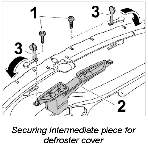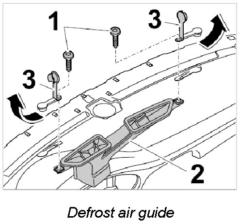 1. Pull defrost air guide -2- up out of the heater/air-conditioning unit.