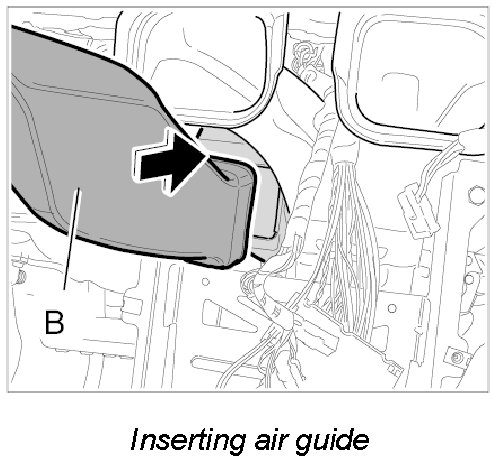 1. Insert the air guide -B- into the heating/air-conditioning unit and check that it is secure.