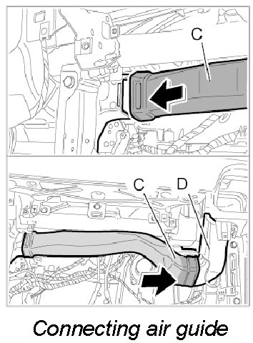 2. Connect air guide -C- at the heater/air-conditioning unit and at the air guide -D-.