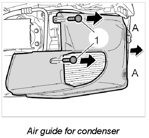 2. Pull the air guide forward and disengage it at the condenser -A-.