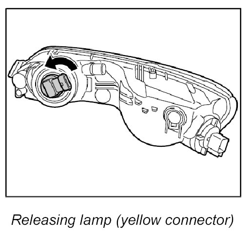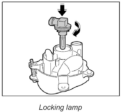 1. Insert new lamp in headlight and turn lamp in left fog light to the right or turn lamp in right fog light to the left (bayonet lock).