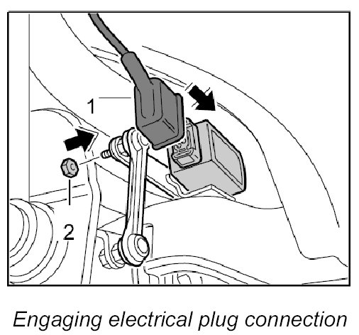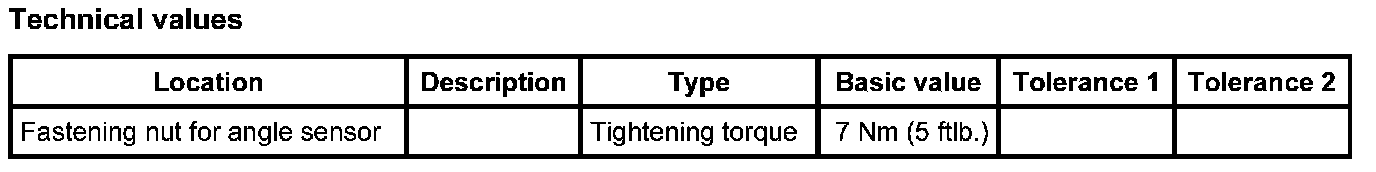 INFORMATION: If the angle sensor has been replaced, the front end control unit must be calibrated; afterwards the headlight setting must be checked and adjusted if necessary.