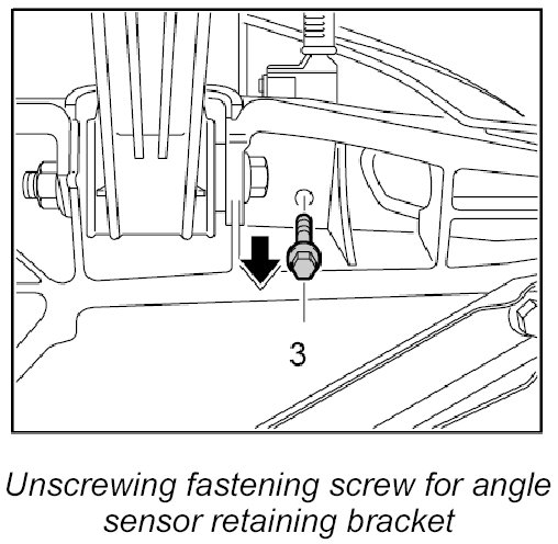 3. Unscrew fastening screw -3- for angle sensor retaining bracket on side member from below.
