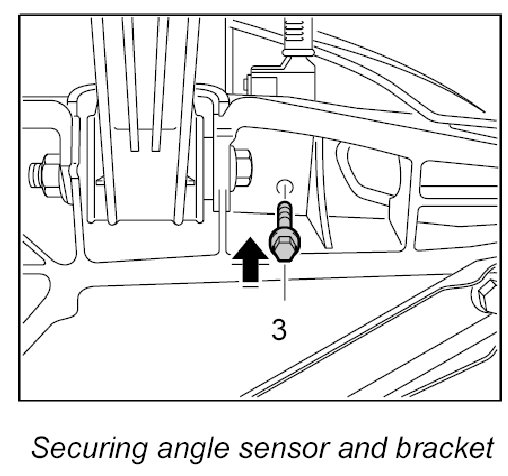 1. Fasten angle sensor to retaining bracket and secure with fastening screw -3- to the side member.