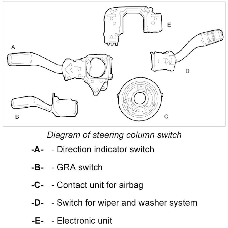 3. Turn the steering column switch round and remove the electronic unit -E-.