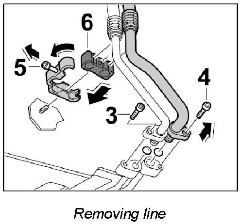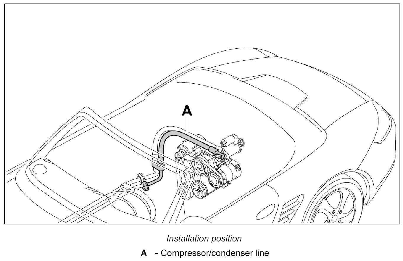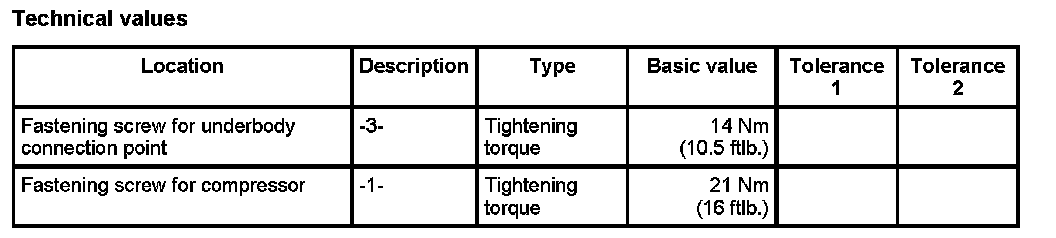 2. Insert line into evaporator line and secure using the fastening screw -3-. - Tightening torque: 14 Nm (10.5 ft. lbs.)