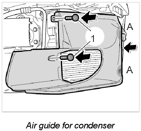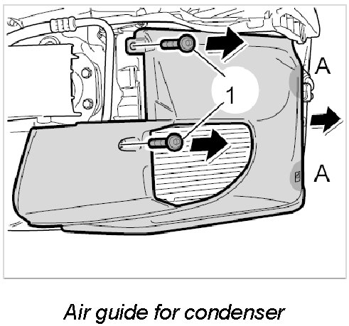 2. Pull the air guide forward and disengage it at the condenser -A-.