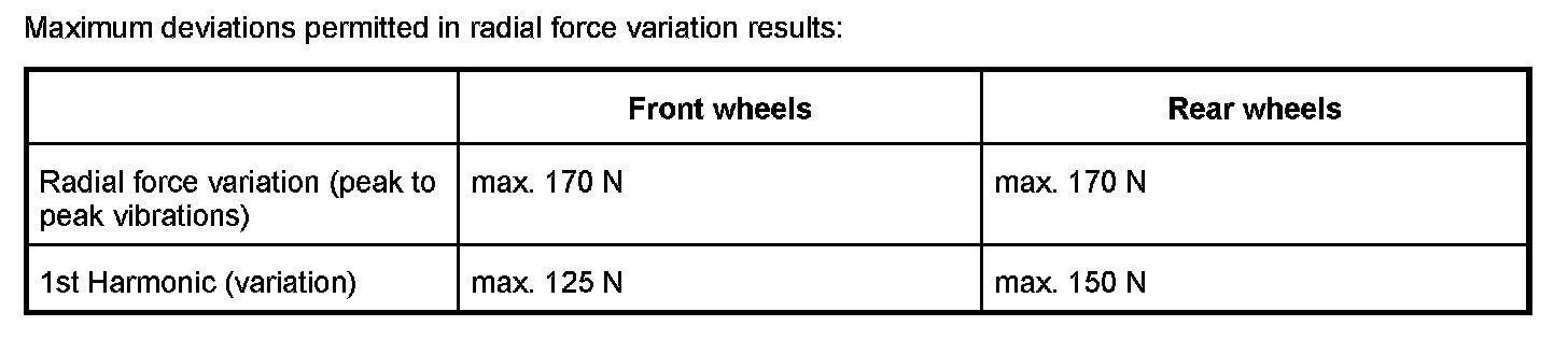 Information: A new tire must be fitted if the radial force variation cannot be reduced to the values listed in the table.