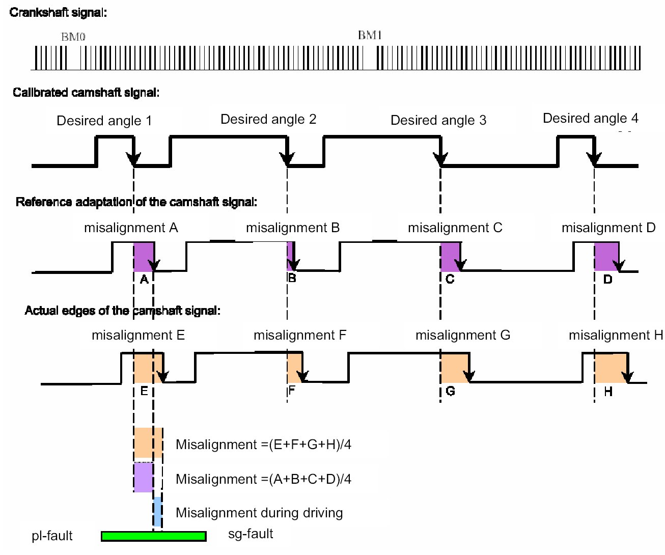 - Angle of misalignment are stored in EEPROM over whole engine life, angle limitation +/- 5 degrees crank angle. Misalignment over +/- 5 degrees crank angle will be added to the adaptation correction in part 2.