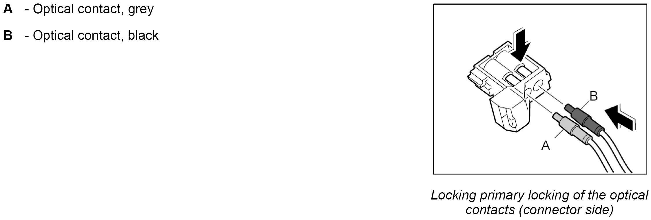 1. Insert the optical contact -A and B- in the connector until it engages audibly.