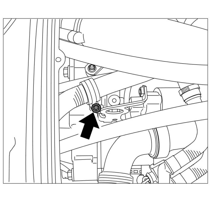 4. Fit and tighten Torx screw (M6 x 12) to secure holding clamp on vent line -arrow-. => Tightening torque: 7.5 ftlb.