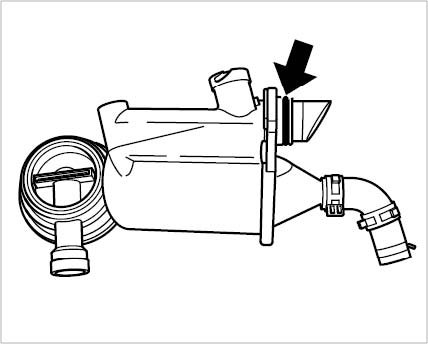 2. Position oil separator, push hose onto connection piece and fit spring band clamp -arrow-.