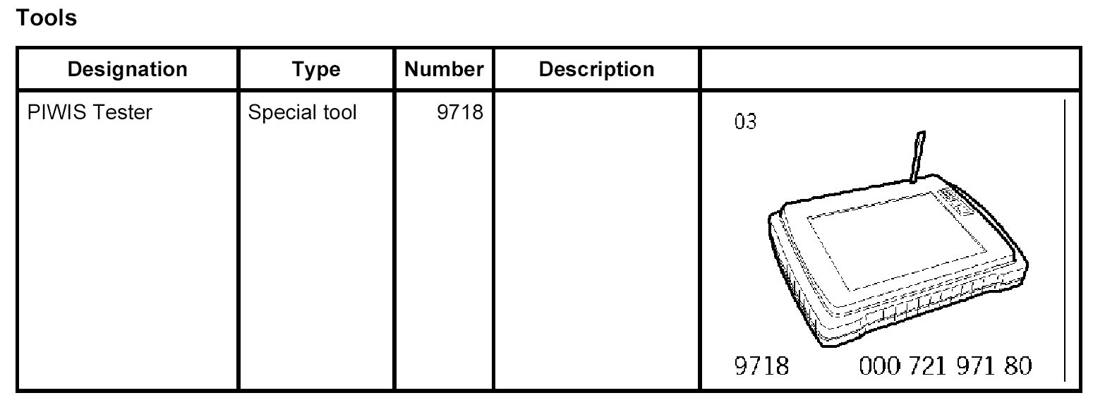 If a new control unit has to be installed, read out as much of the data from the old control unit as possible using the PIWIS Tester 9718.