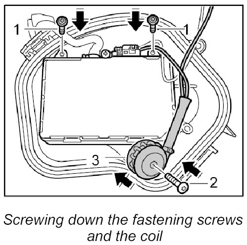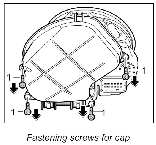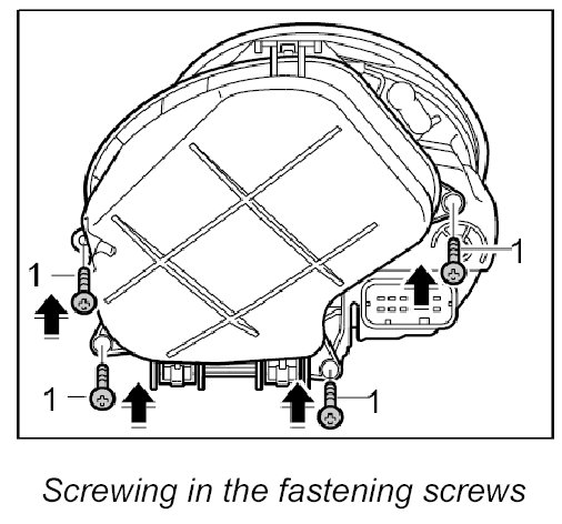 2. Insert the control unit in the headlight cap and screw down with both fastening screws -1-.