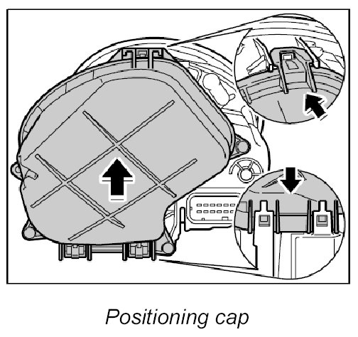 2. Release cap once at the top and twice at the bottom -a- and remove from the main headlight.