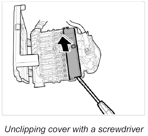 7. Unclip the cover for the fuse elements with a screwdriver.