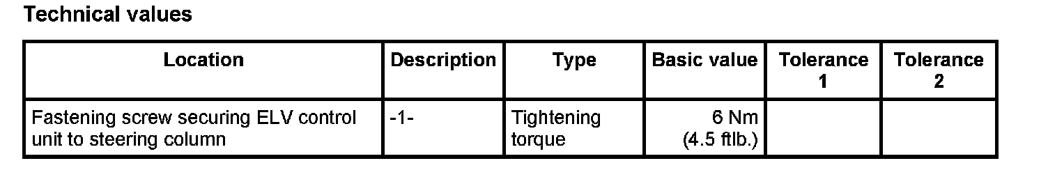 Information: The ELV control unit is engaged in the steering column and is clamped securely with a fastening screw.