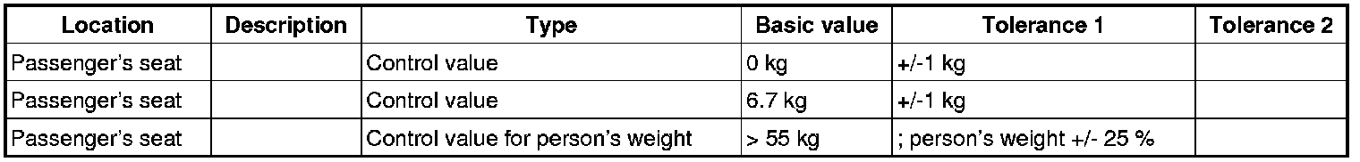 10.1.1. If there is no weight on the passenger's seat, compare values (see table below) using the PIWIS Tester. The Passenger Airbag Off indicator light in the centre console must not come on.