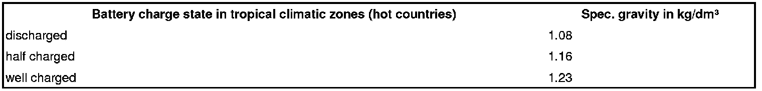 The measured values for the gravity of electrolyte of the individual battery cells should not deviate by more than 0.03 kg/dm³ from each other.