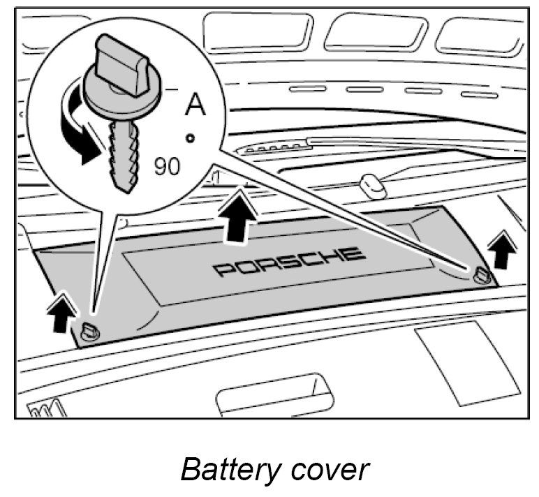 1. Open the turn-lock caps -A- of the battery cover and take off the plastic lid.