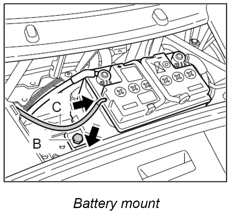 2. Fit the battery mount and secure with the fastening screw -B-. M8: 23 Nm (17 ft. lbs.)