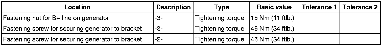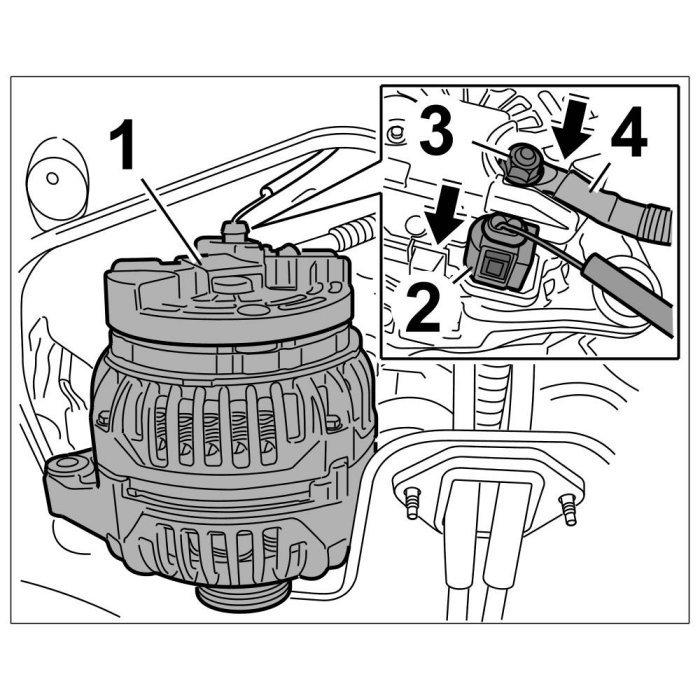 1. Insert generator -1- , connect B+ lead -4- and tighten with fastening nut -3-. => Tightening torque: 15 Nm (11 ftlb.)