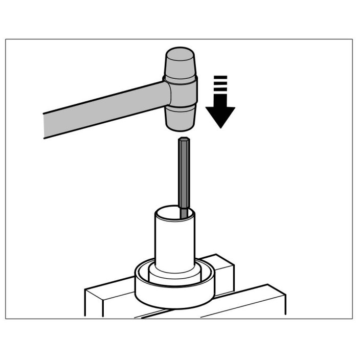 1. Press guide sleeve on sufficiently and drive sealing ring out of the guide sleeve using a punch.