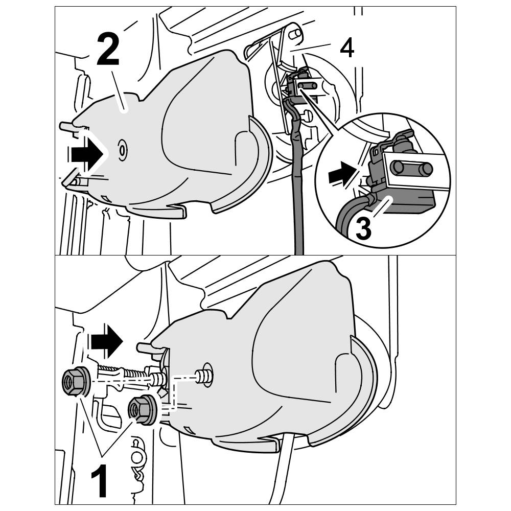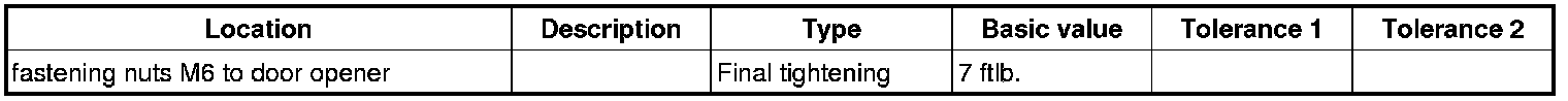2. Position the lower part of the door opener -2- under the handle and screw down with fastening nuts -1-. Tightening torque => Final tightening: 7 ftlb.