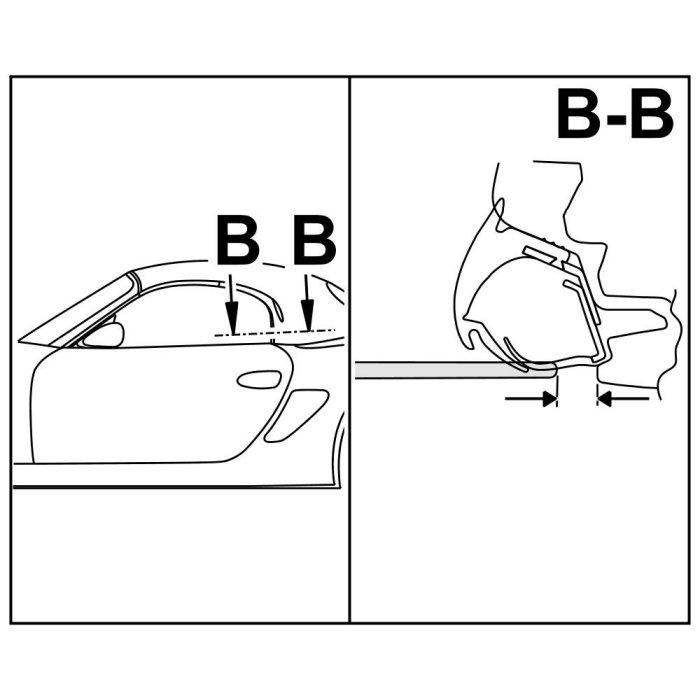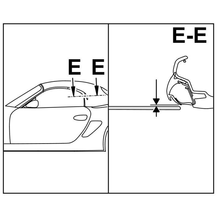 Control dimension for section -E-E- , at the same height as the top corner of the seal on the mirror attachment point finisher. => Control dimension: 0 mm-2 mm