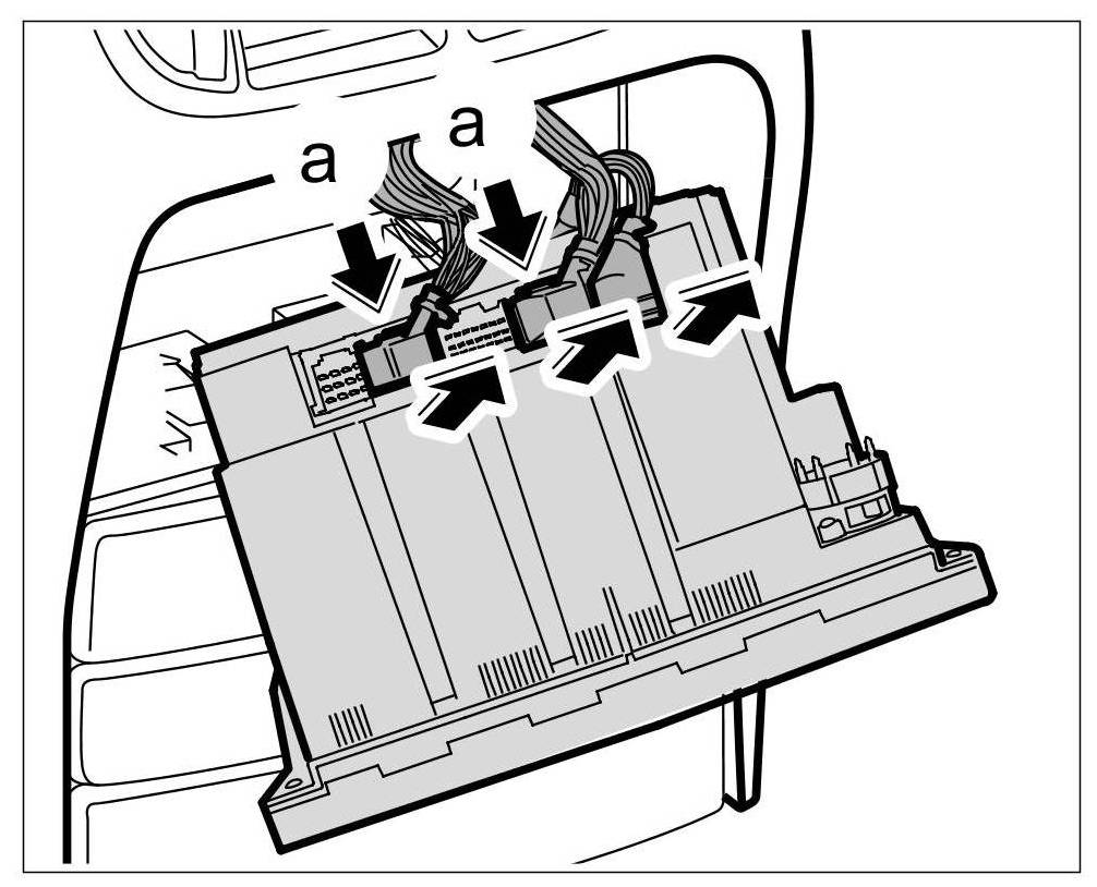 3. Press in latch of electrical plugs -a- and pull the plugs up and off.