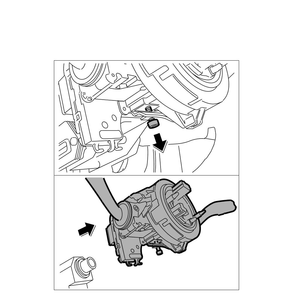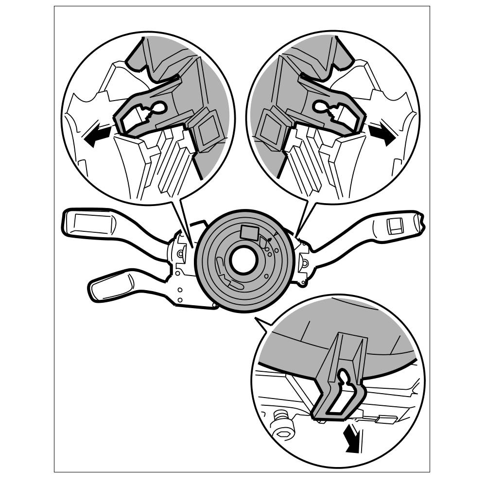 -> When removing and installing steering column switch, the steering wheel must be pulled off in the straight-ahead position. This ensures that the airbag contact unit is locked in the central position.