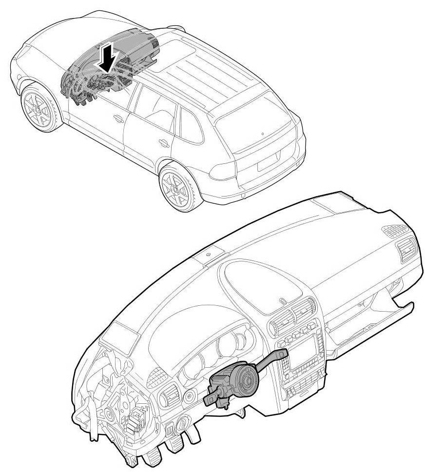 -> If the setting has inadvertently changed (locking element released, airbag contact unit out of adjustment), the airbag contact unit must be adjusted as follows. => 945019 Removing and installing steering column switch - section on "disassembling and assembling".