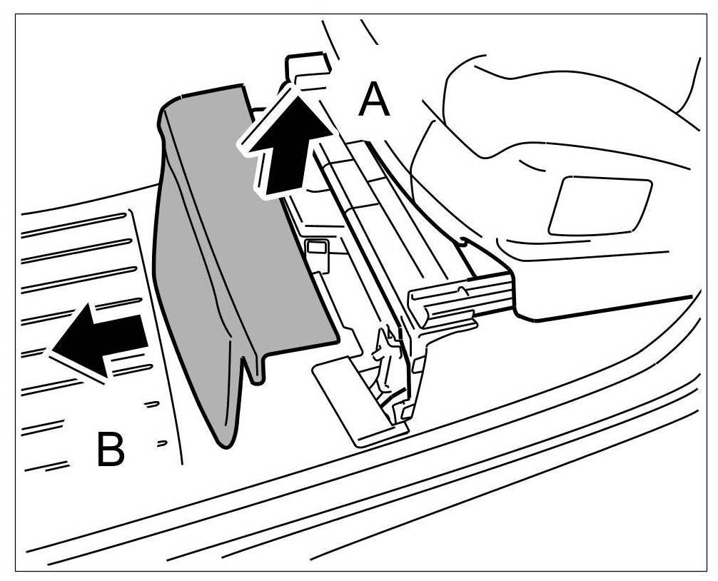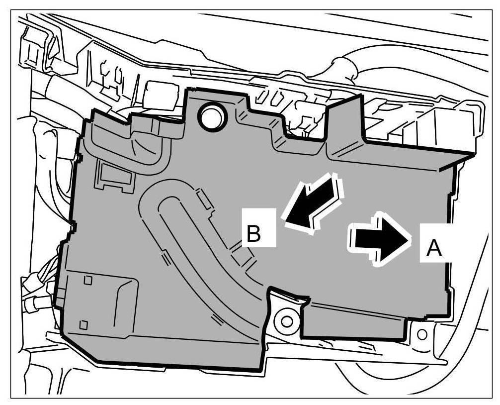 8. Release the cover -arrows A- and open it -arrow B-.
