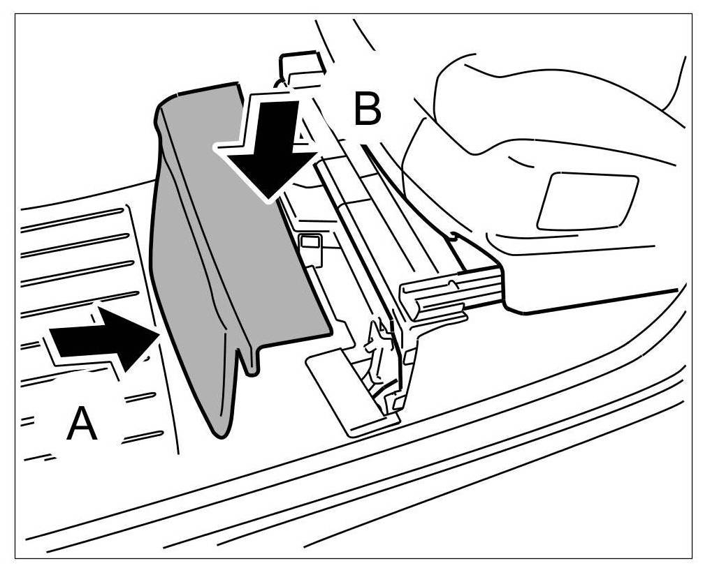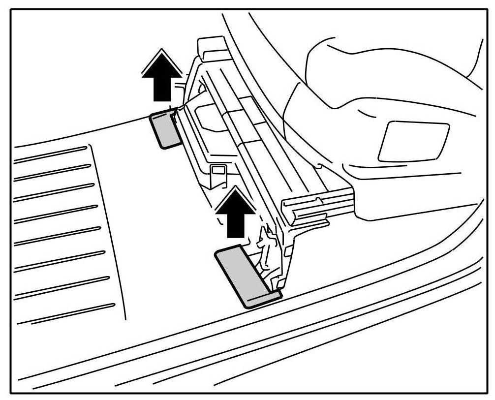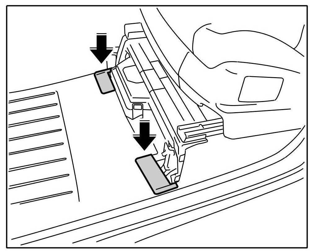 4. Clip in the right and left carpet cover -arrows- until they engage securely.