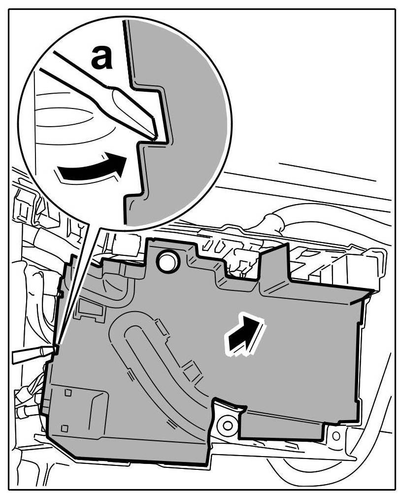 10. Unclip the cover from the power distributor using a screwdriver -arrow a-.