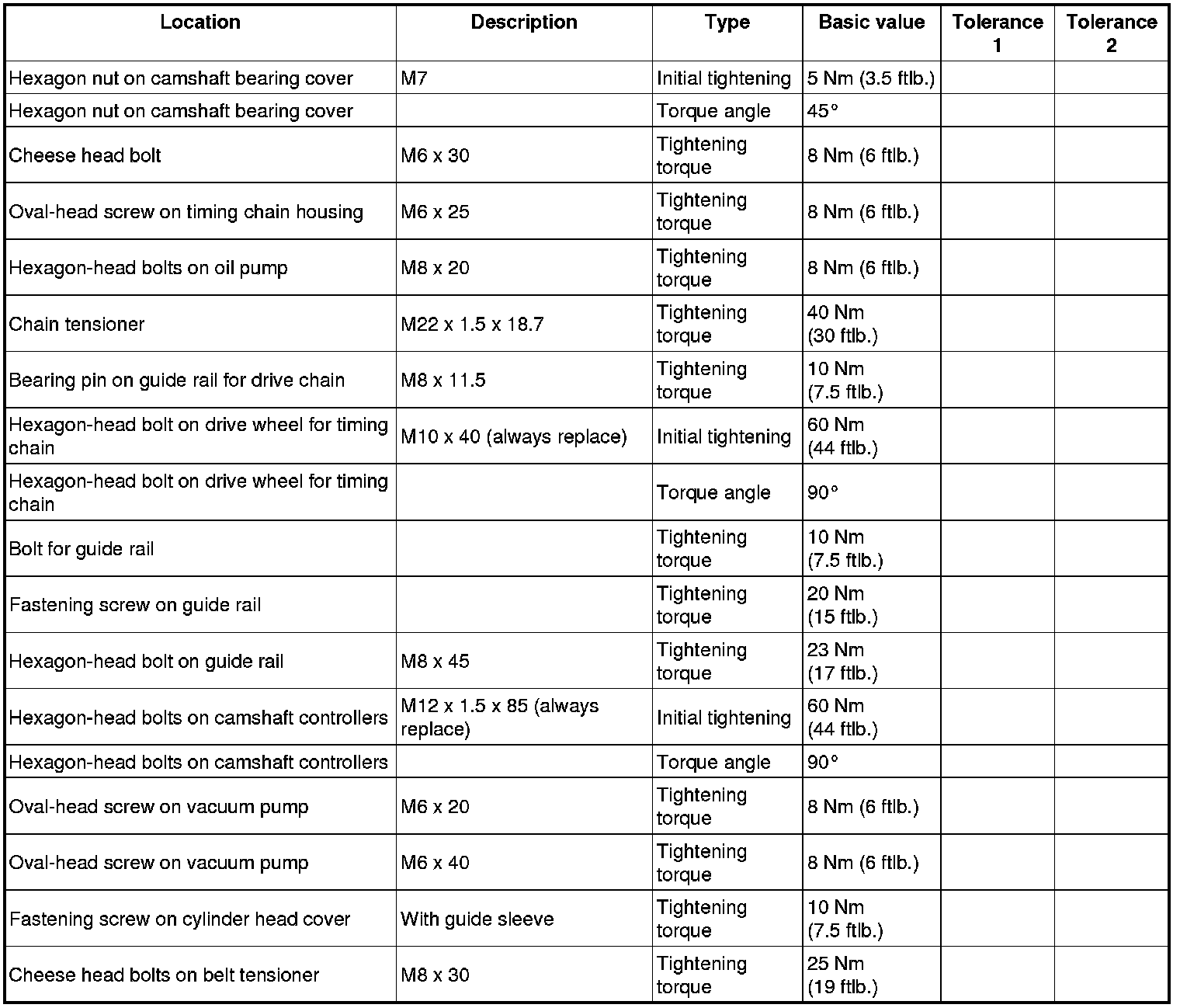 Then tighten all cylinder-head screws a second time to 30 Nm (22 ftlb.).
