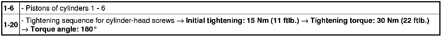 Tightening sequence (1-20) for cylinder-head screws -1 to 20- and tighten to the specified torque.