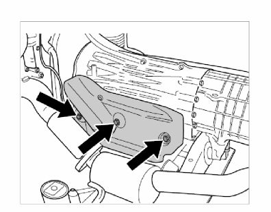 1. Remove shield on the transmission. To do this, unscrew three fastening screws -arrow-.
