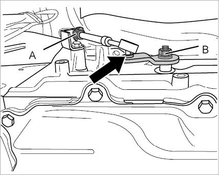 ^ The cable adjustment must be changed when a new selector lever cable is used.