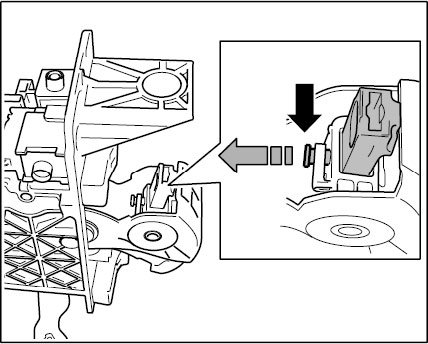 2. Press rubber sleeve on the selector lever cable into the lower part of the selector frame.