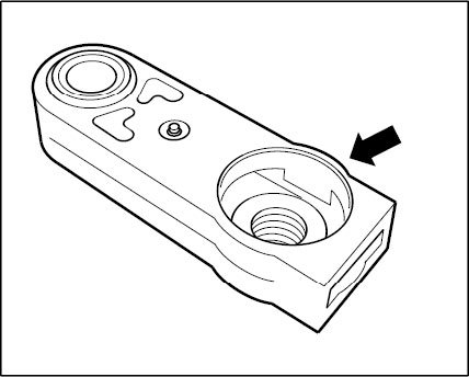 3. When doing so, ensure that the opening for the adjusting screw -arrow- is turned upwards.