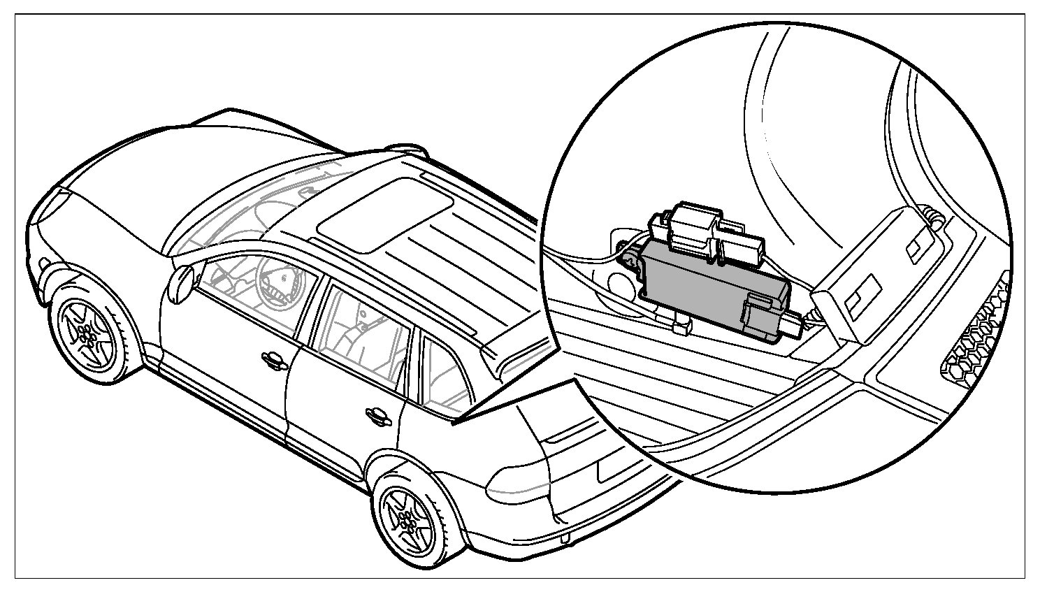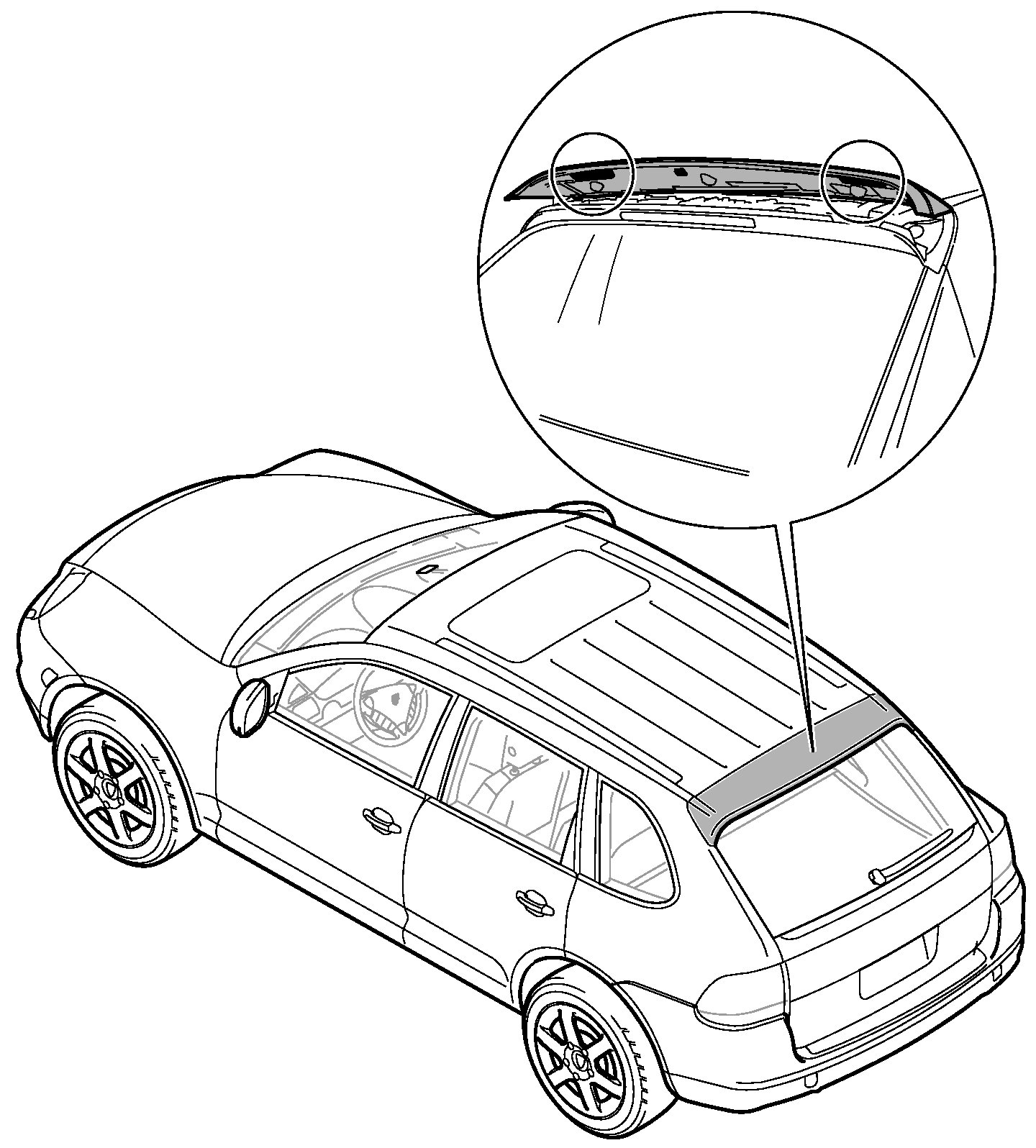 Antenna amplifier on left side window (reverse mirror image on right side window)