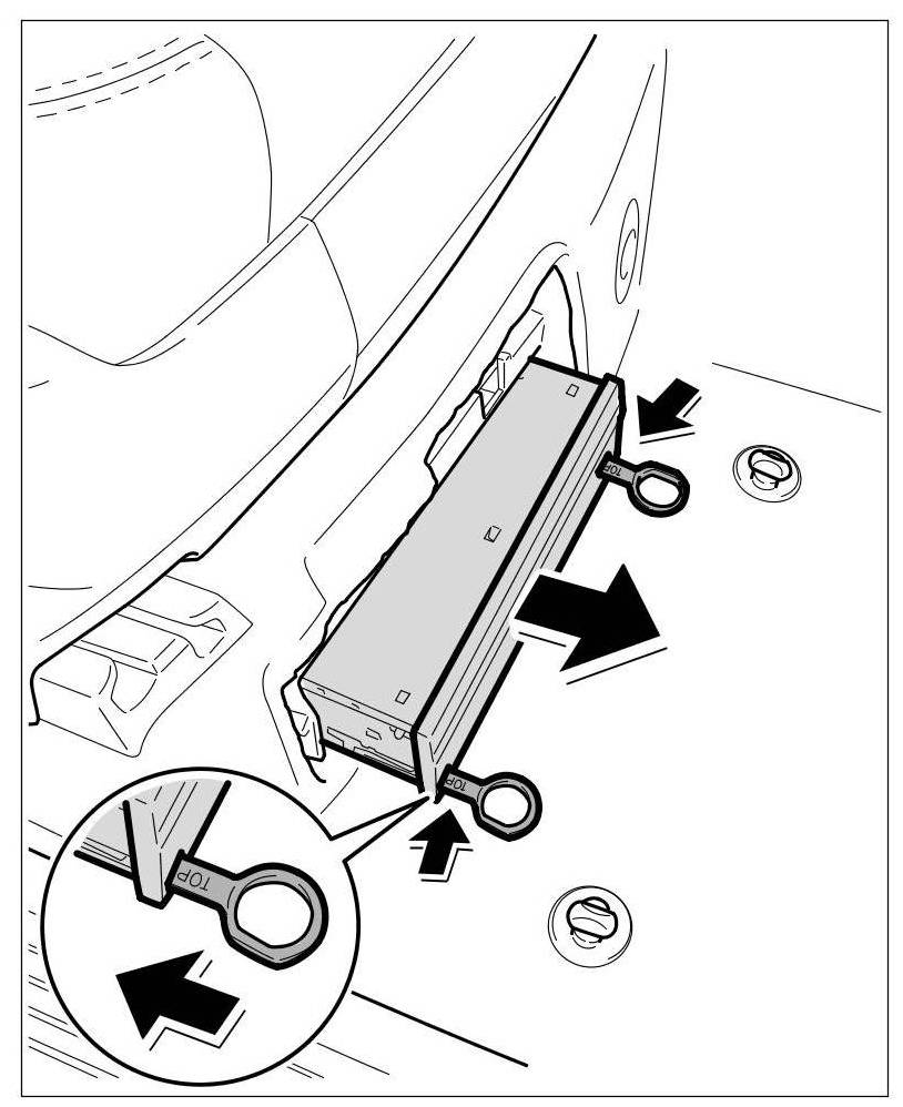 1. Switch ignition off, remove ignition key and switch off audio system.