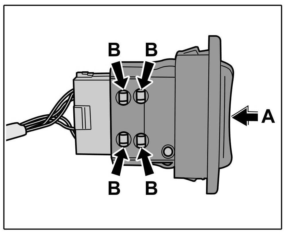 1. Push switch onto the connector -arrow A- until the locking tabs -arrows B- are felt to engage.