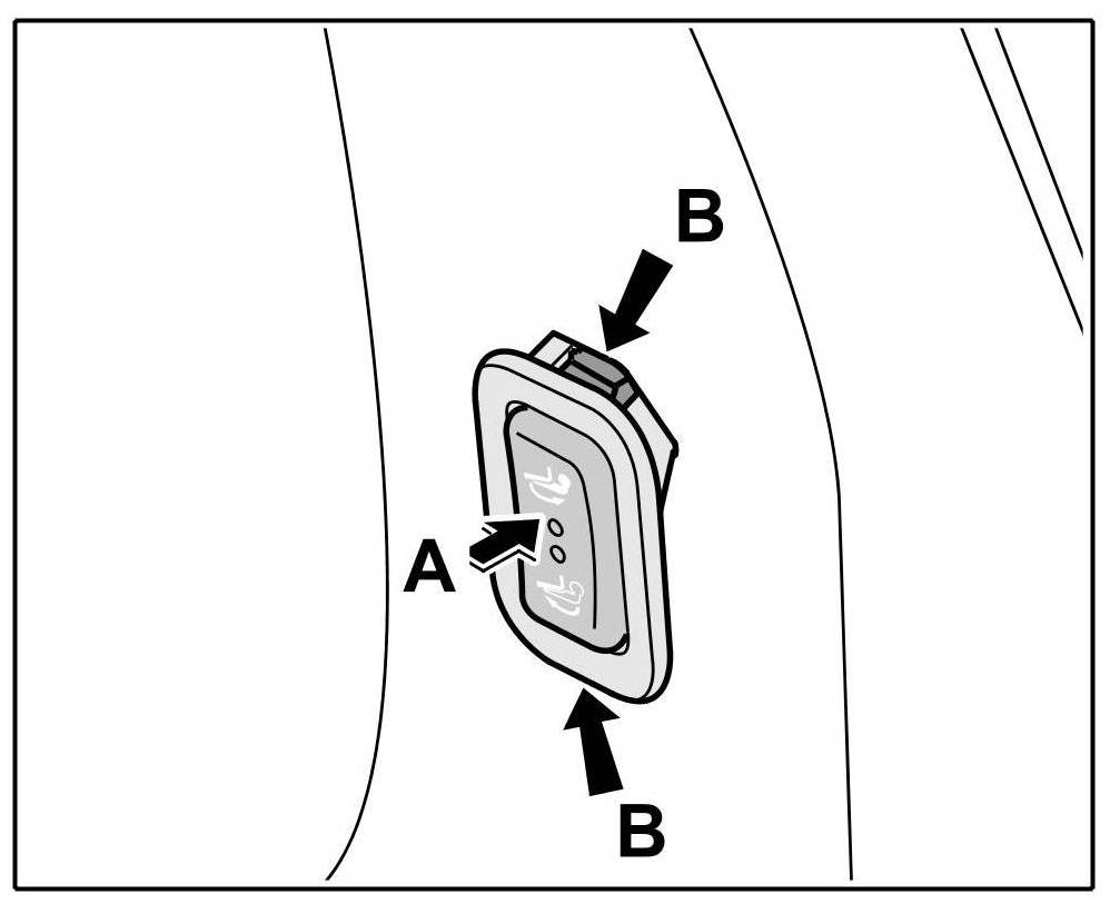 2. Position the switch parallel to the trim panel and -arrow A- until the locking tabs -arrows B- are felt to engage.