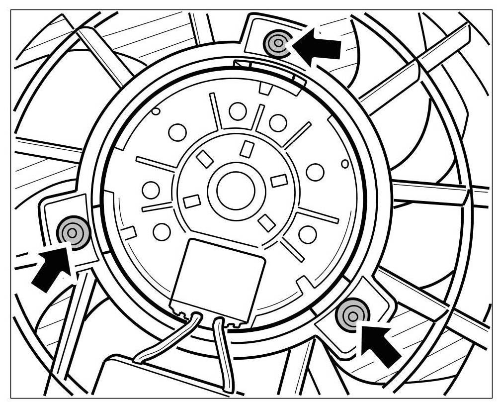 2. Undo the 3 fastening screws on fan and pull fan down and out.