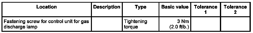 1. Position control unit for gas-discharge headlight -2- on the Bi-Xenon headlight -3- in -direction of arrow- and secure it with the three fastening screws -2-. - Tightening torque: 3 Nm (2.0 ftlb.).