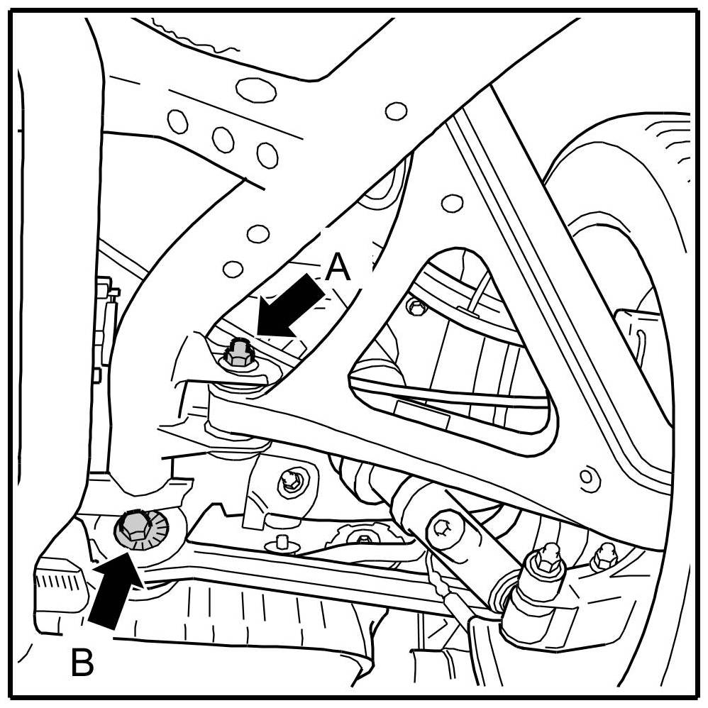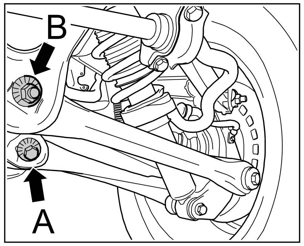 Specified tightening torque for lock nut at the toe eccentric -B- = 180 Nm (133 ftlb.).